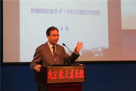 (北京大學(xué)人民醫(yī)院胸外科知名教授、主任王俊做講座)